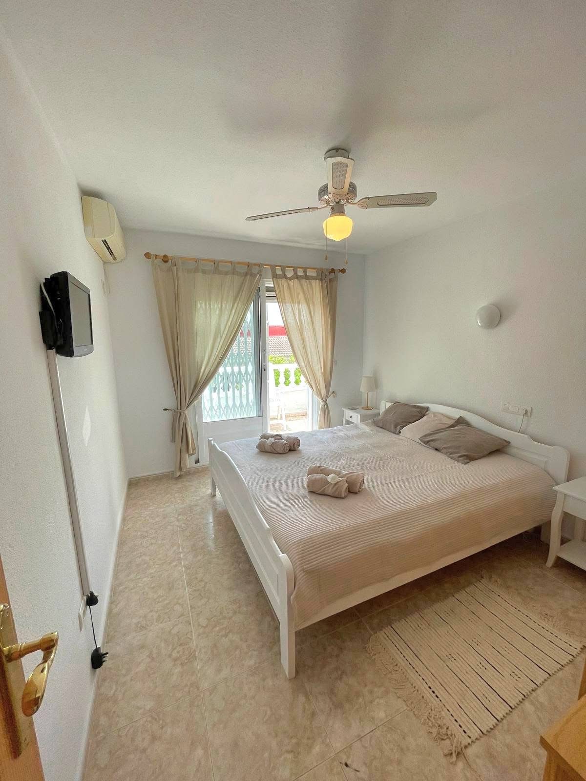 Poilsis šalia Rožinio ežero – jaukus bungalas Torreviejoje, El Chaparral 🌅 Šalia įspūdingo Laguna Rosa (Raudonojo ežero) ramioje El Chaparral gyvenvietėje nuomojamas jaukus dviejų miegamųjų bungalas jūsų tobuloms atostogoms ☀️ Vos 40 km nuo Alicante–Elche Airport – patogus ir greitas susisiekimas. 🌞 Puiki vieta poilsiui 🏖 Iki ežero – tik 500 m 🌊 Iki jūros – 4 km 🛒 Netoliese parduotuvės, barai ir restoranai 🎢 Vandens pramogų parkas Aquopolis Torrevieja 🎡 Pramogų parkas Parque La Siesta 💦 Didelis baseinas su poilsio zona 🛏 2 miegamieji – patogiai apsistos iki 6 asmenų 🛁 2 vonios kambariai 🍽 Erdvi, pilnai įrengta virtuvė (visi reikalingi indai ir buitinė technika) 🧺 Patalynė, rankšluosčiai, skalbimo mašina ❄️ Kondicionieriai 📺 Televizorius svetainėje ir miegamajame 📶 WIFI 🌺 Dvi terasos su lauko baldais – rytinei kavai ir vakariniams saulėlydžiams 🔥 Grilius jaukiems vakarams